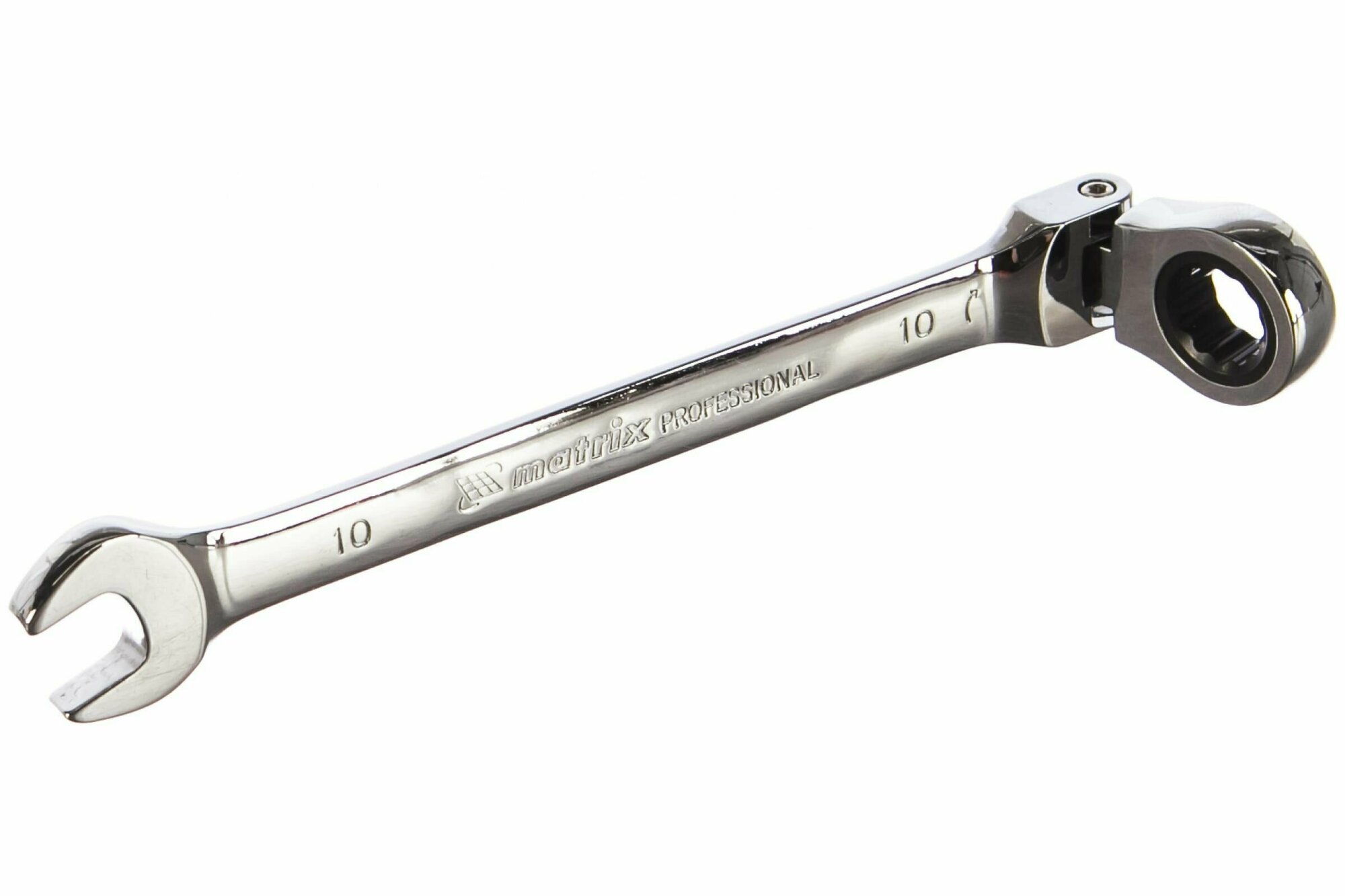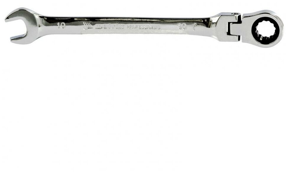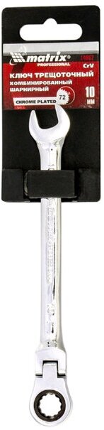 Ключ комбинированный трещоточный, 10 мм, CrV, шарнирный, зеркальный хром Matrix Professional