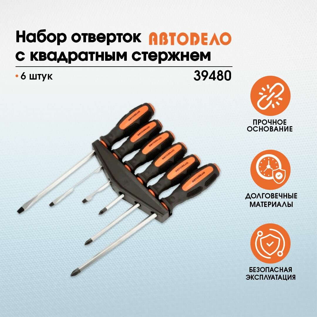 АвтоDело набор отверток 6пр.усиленныхс квадратным стерженем 39480 10400