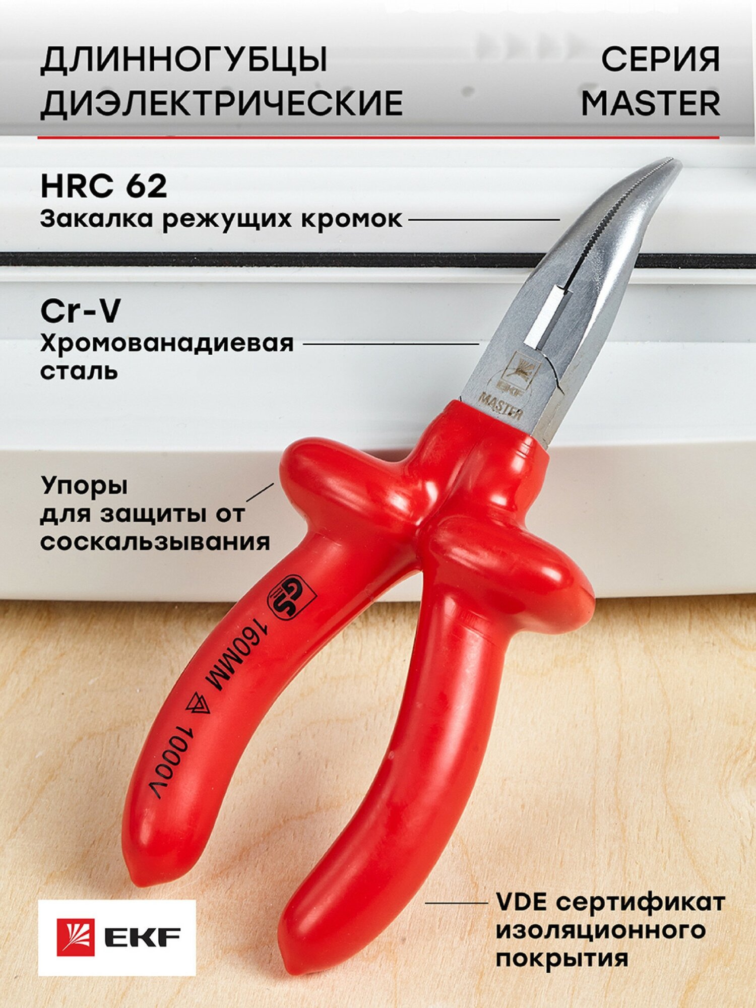 Длинногубцы изогнутые Master 160 мм 1000В EKF