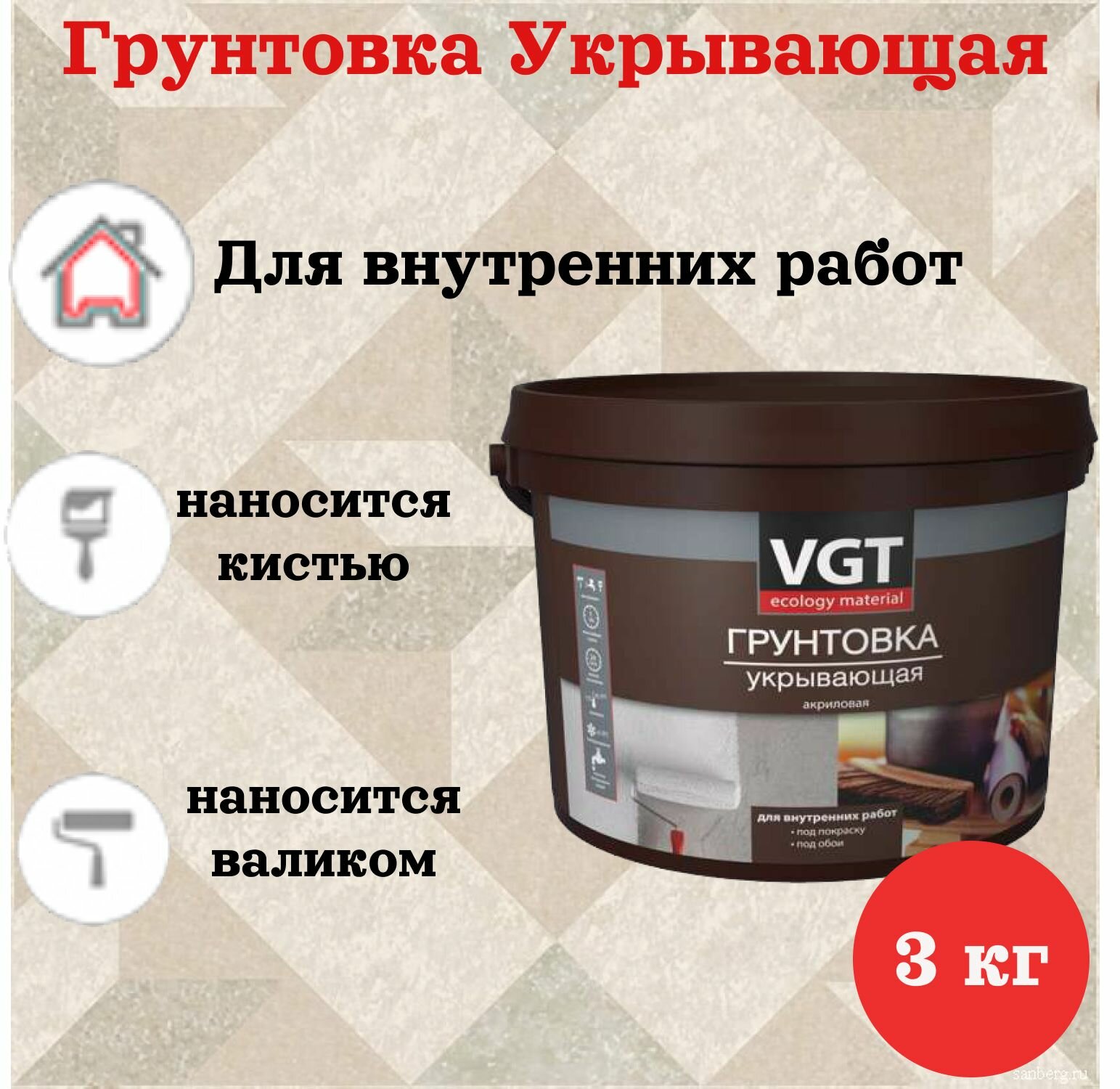 Грунтовка универсальная укрывающая VGT для внутр. работ, грунтовка под обои, под покраску, 3 кг интересное: