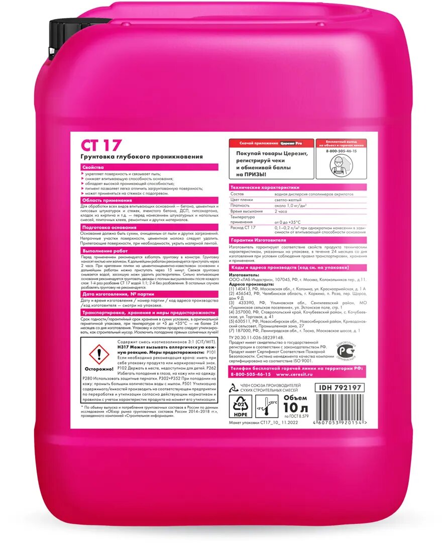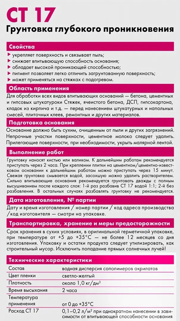 Грунтовка глубокого проникновения церезит CT 17 PRO для укрепления основания 10л интересное: