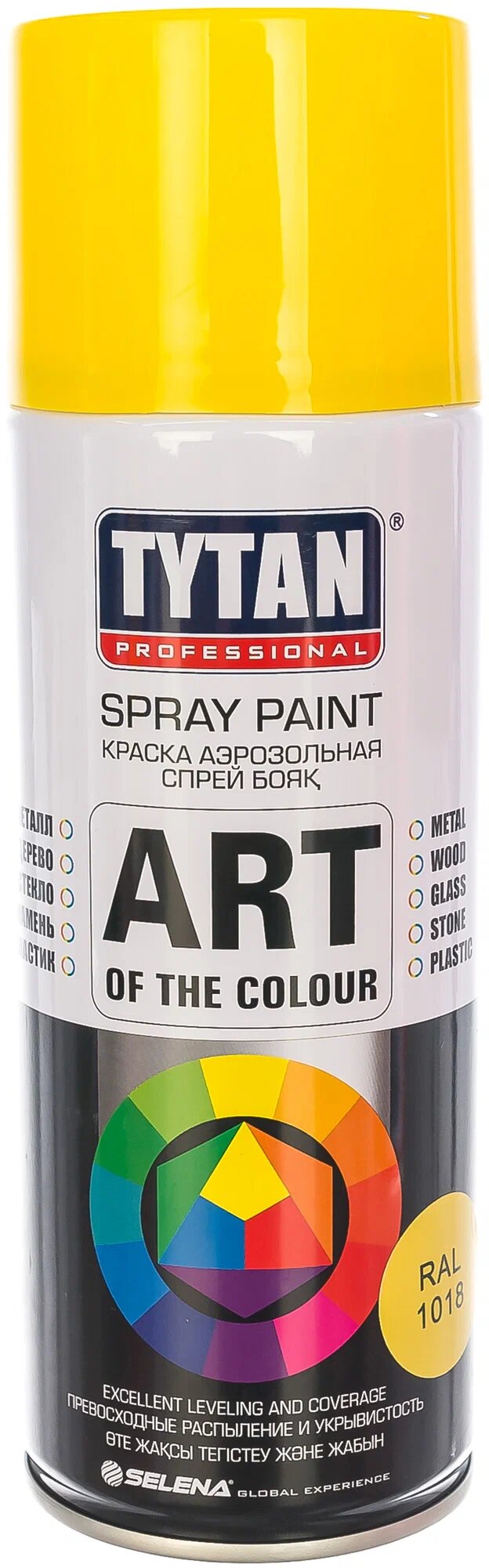 Аэрозольная краска Tytan Professional Art of the color, глянцевая, 400 мл, RAL 1018, желтая