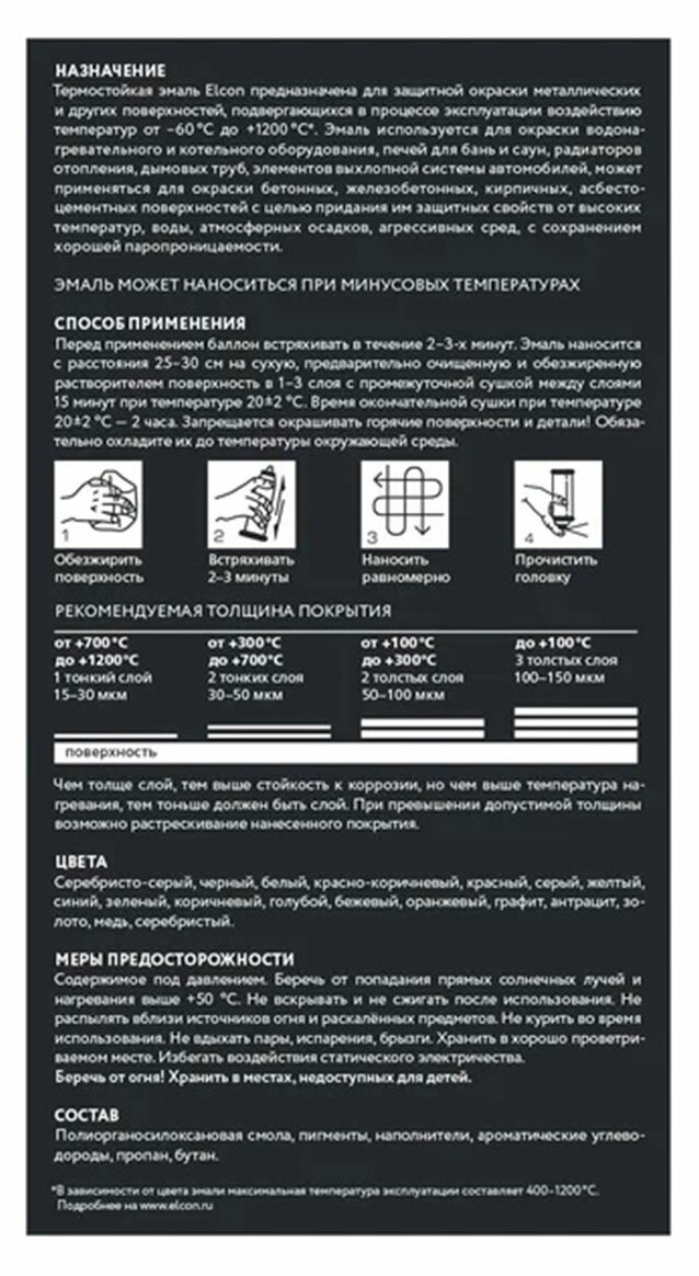 Краска аэрозольная Elcon Max Therm Черная (до 1000С) для мангалов, быстросохнущая, термостойкая, аэрозоль 520 мл