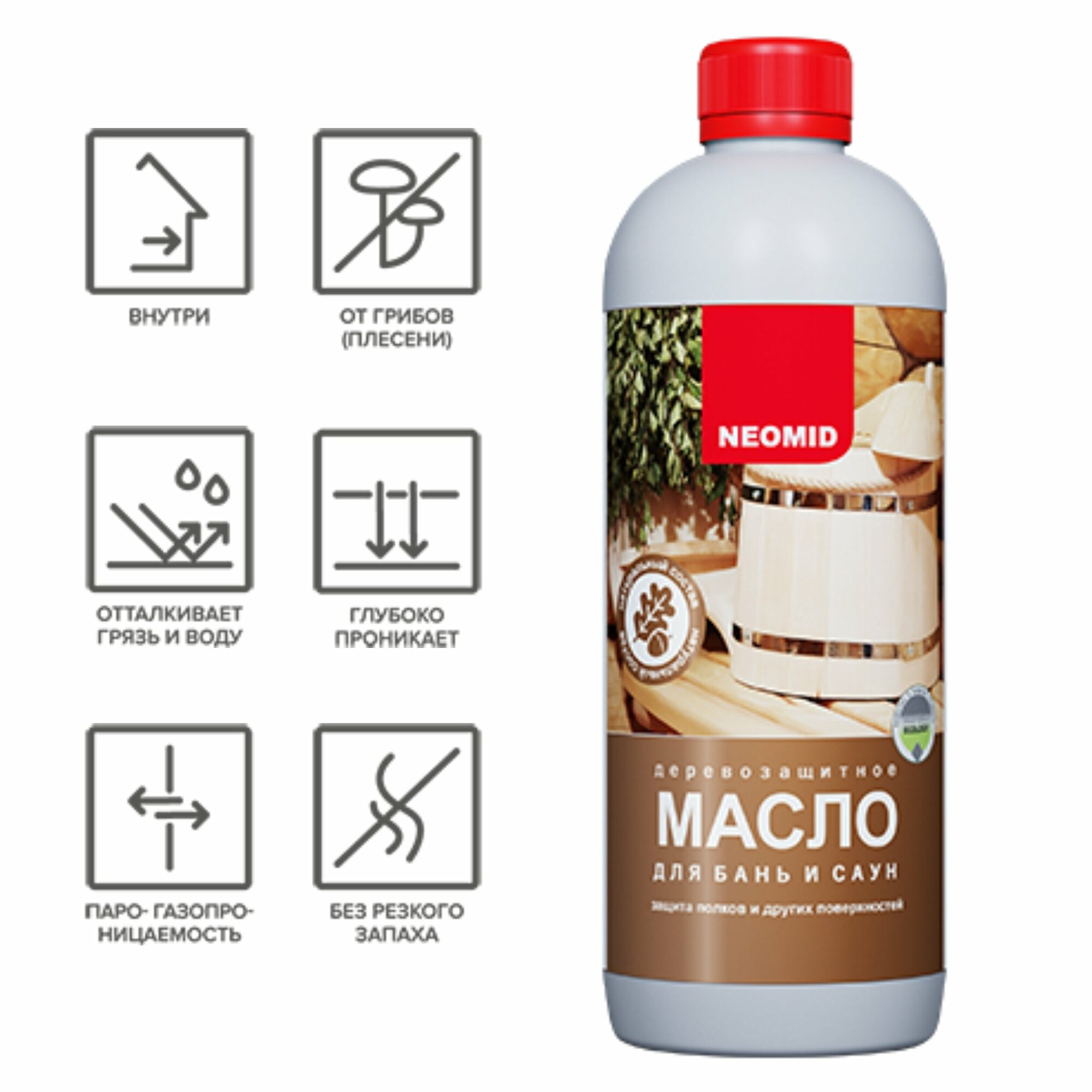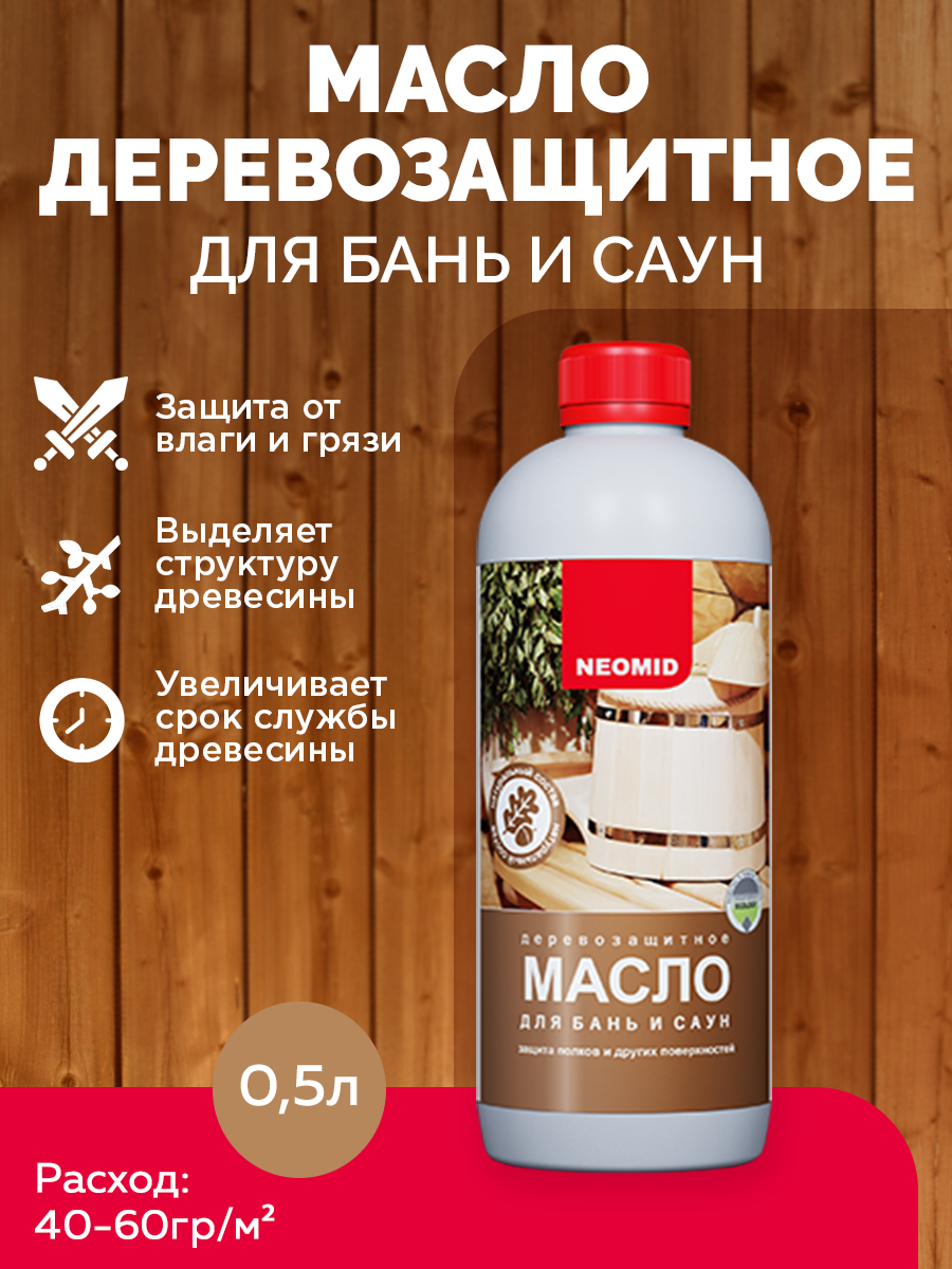 Купить Масло для бань и саун NEOMID (Бесцветный, 0,5л) / Для полков в парилке, для помывочной, для предбанника