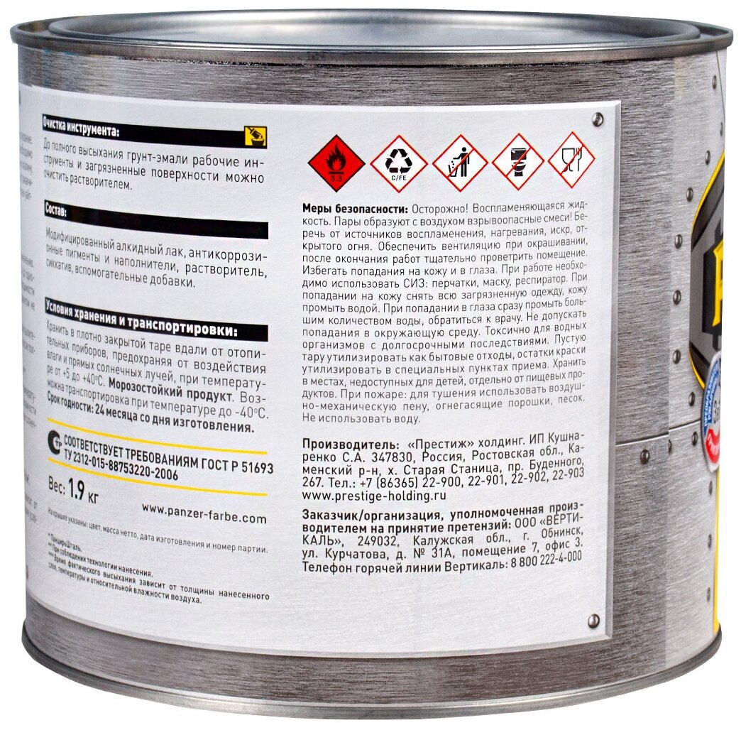 Купить Грунт- эмаль ПО ржавчине гладкая "PANZER" серая 1,9 КГ, полуглянцевая, 1ШТ, жестяная банка