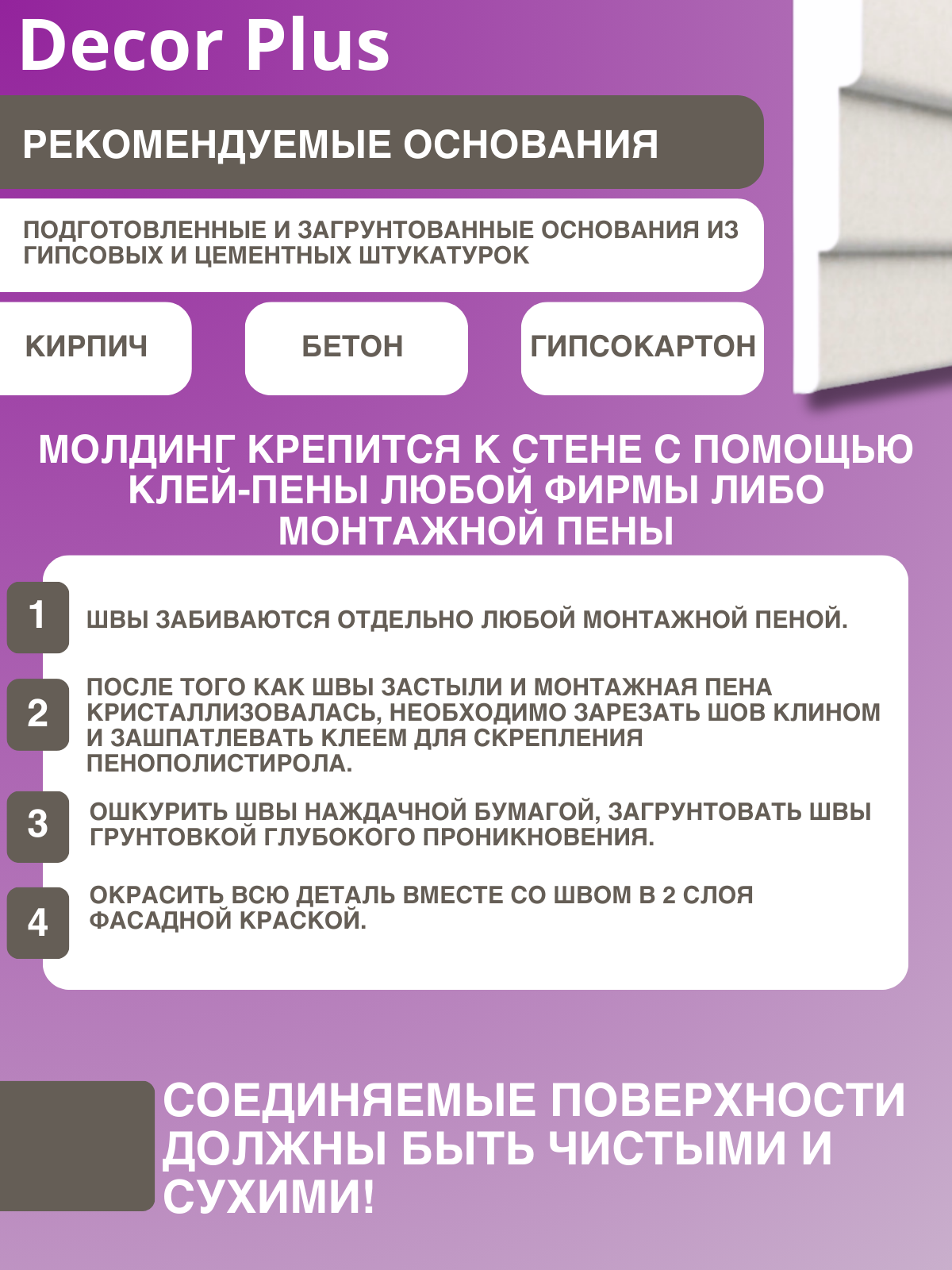 | Дополнительная информация | Фасадный молдинг и пенополистерола ппс16ф с защитным покрытием :Мраморная крошка на акриловой основе |