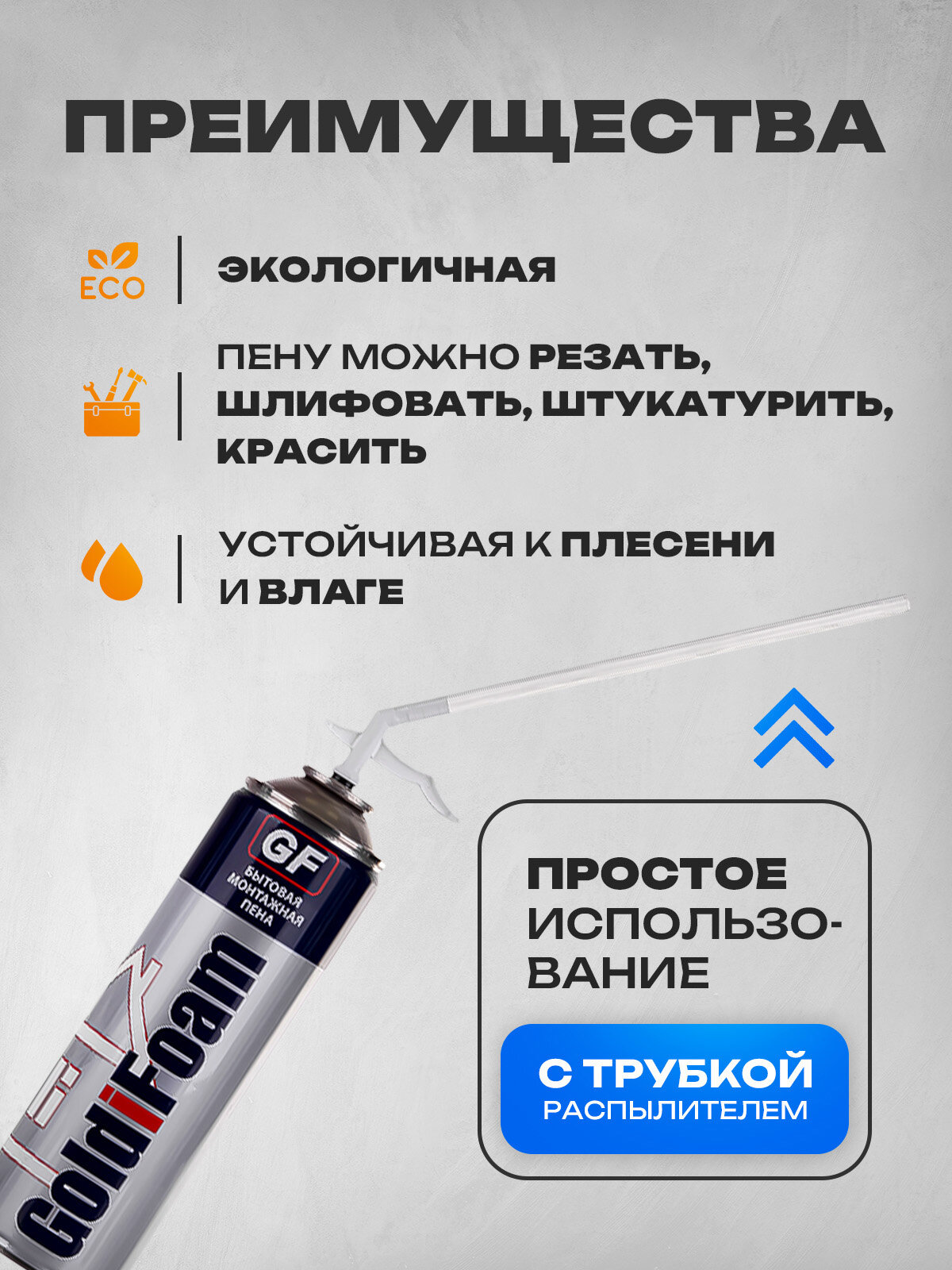 Пена монтажная бытовая с трубочкой GoldiFoam MINI 650 мл. профессиональная всесезонная с трубкой