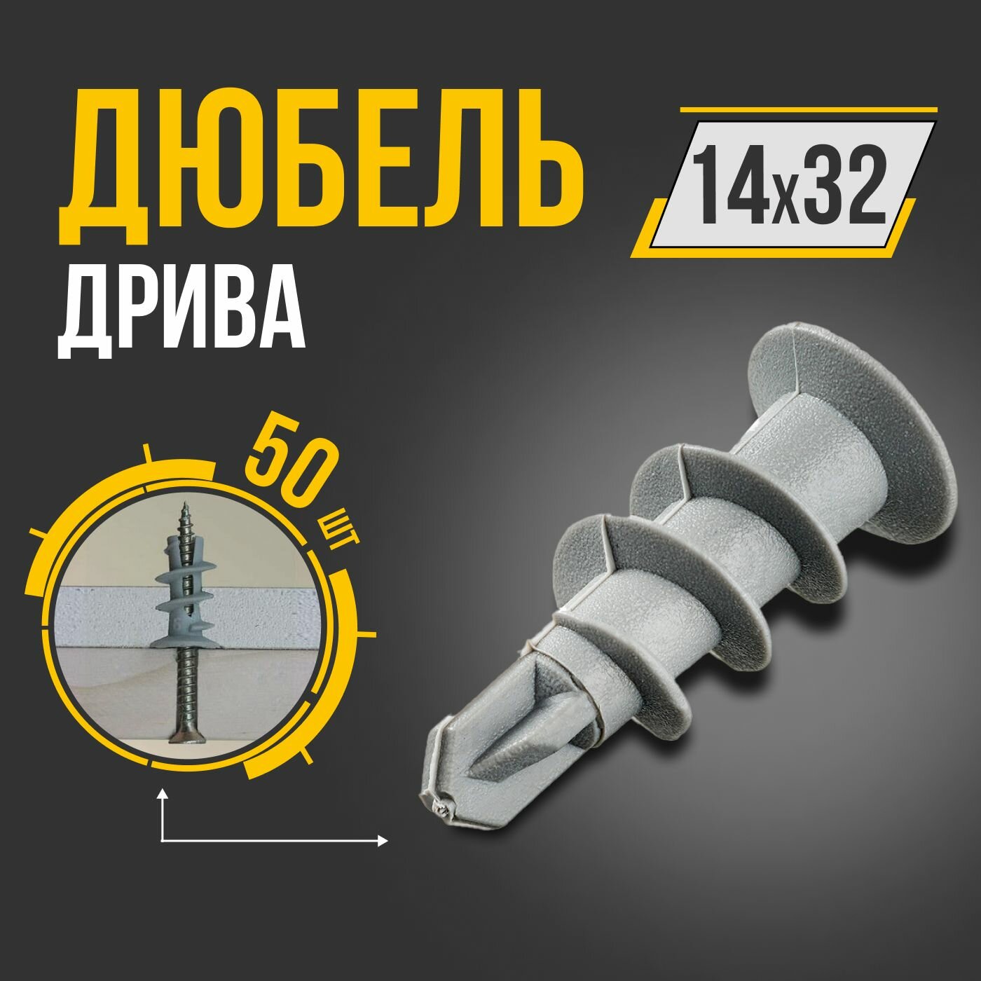 Дюбель Дрива 14х32 (50шт.) для гипсокартона, эко-пластик, Tech-Krep интересное: