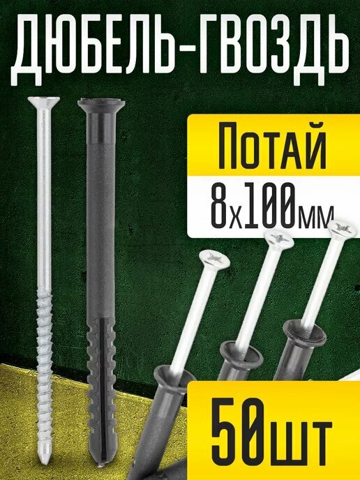 СохранитьДюбель-гвозди 8х100 мм, потайной бортик (50 шт.) для строительства, для бетона, камня, кирпича интересное: