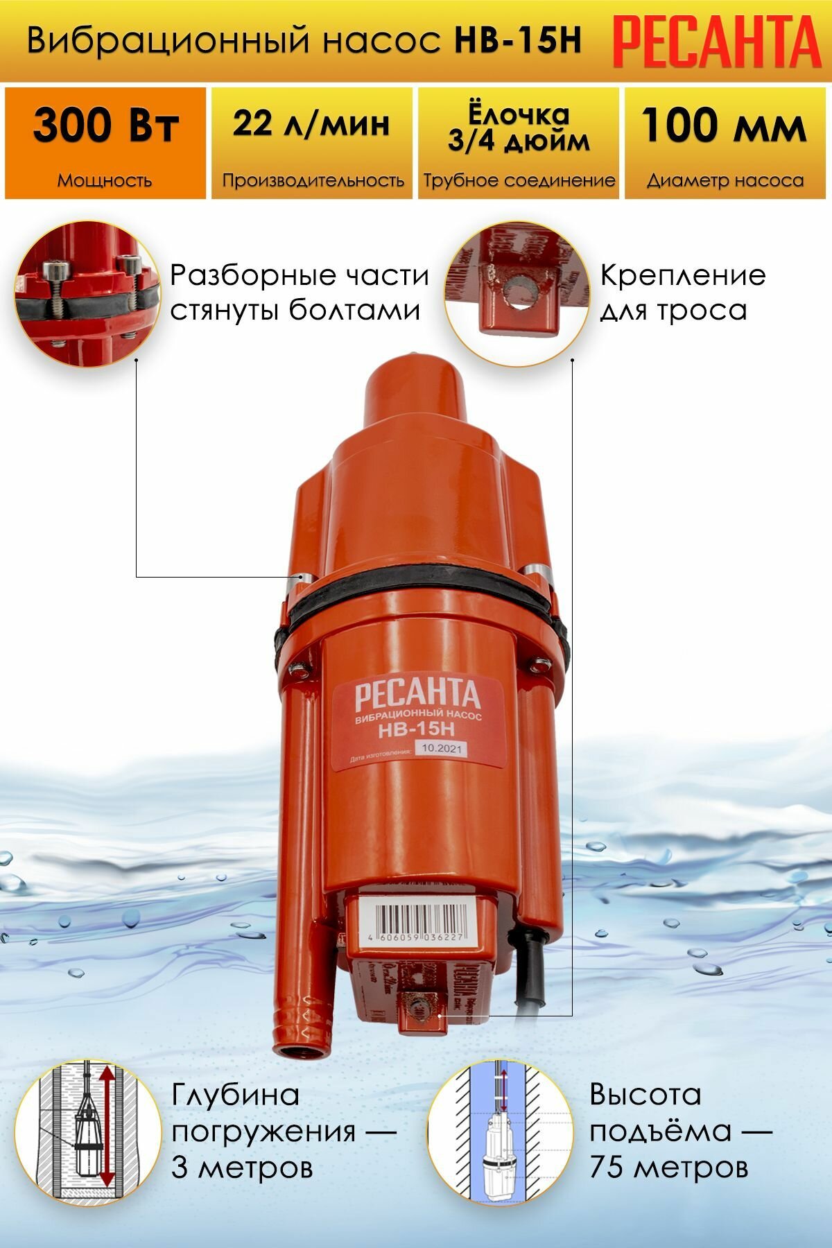 Насос вибрационный колодезный Ресанта НВ-15Н для чистой воды 22 л/мин нижний забор (77/8/4) интересное: