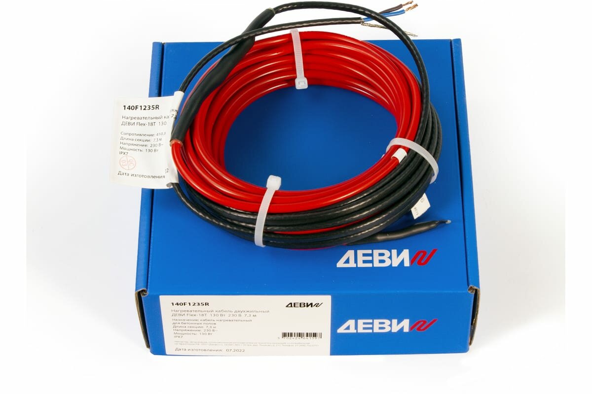 Теплый пол (нагревательный кабель) ДЕВИ Flex-18T, 130 Вт, 7,3 м