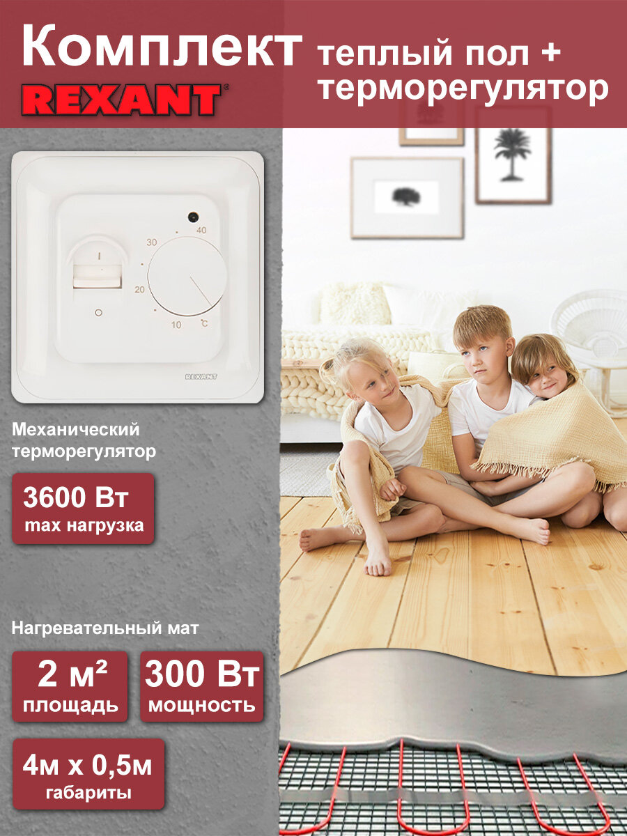 СохранитьКомплект теплый пол REXANT Classic RNX -2,0-300 (0,5 х 4м) 300 Вт с механическим терморегулятором интересное: