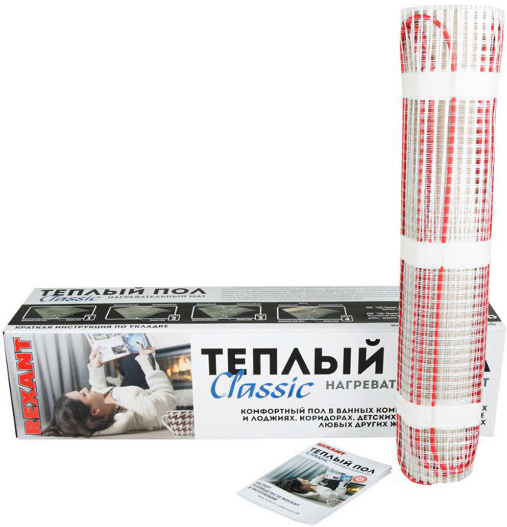 Теплый пол (нагревательный мат) Rexant Classic RNX-0.5-75 (0.5 кв. м, 0.5х1.0 м, 75 Вт)