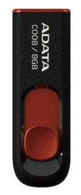 Флешка ADATA C008 8 ГБ, 1 шт., черный/красный