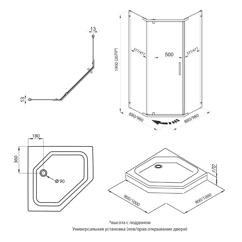 | Дополнительная информация | Комплектация | Душевой уголок - 1 шт. , Инструкция - 1 шт.;Гарантия | 2 года;Страна | Россия;Стиль | современный;Материал профиля | алюминий; |