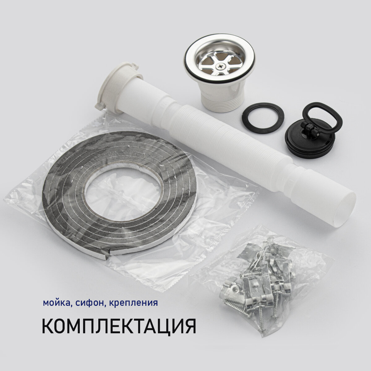 Мойка кухонная FABIA врезная, 48х48, глубина 160 мм, большой сифон без перелива, хром