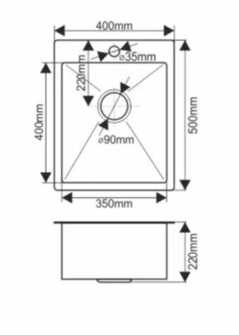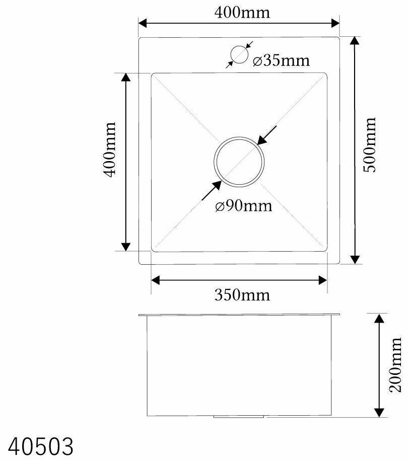 Мойка Fabia Profi 40503 врезная 40х50см толщина 3,0х0,8 мм,глубина 200мм+ большой сифон с переливом+ .