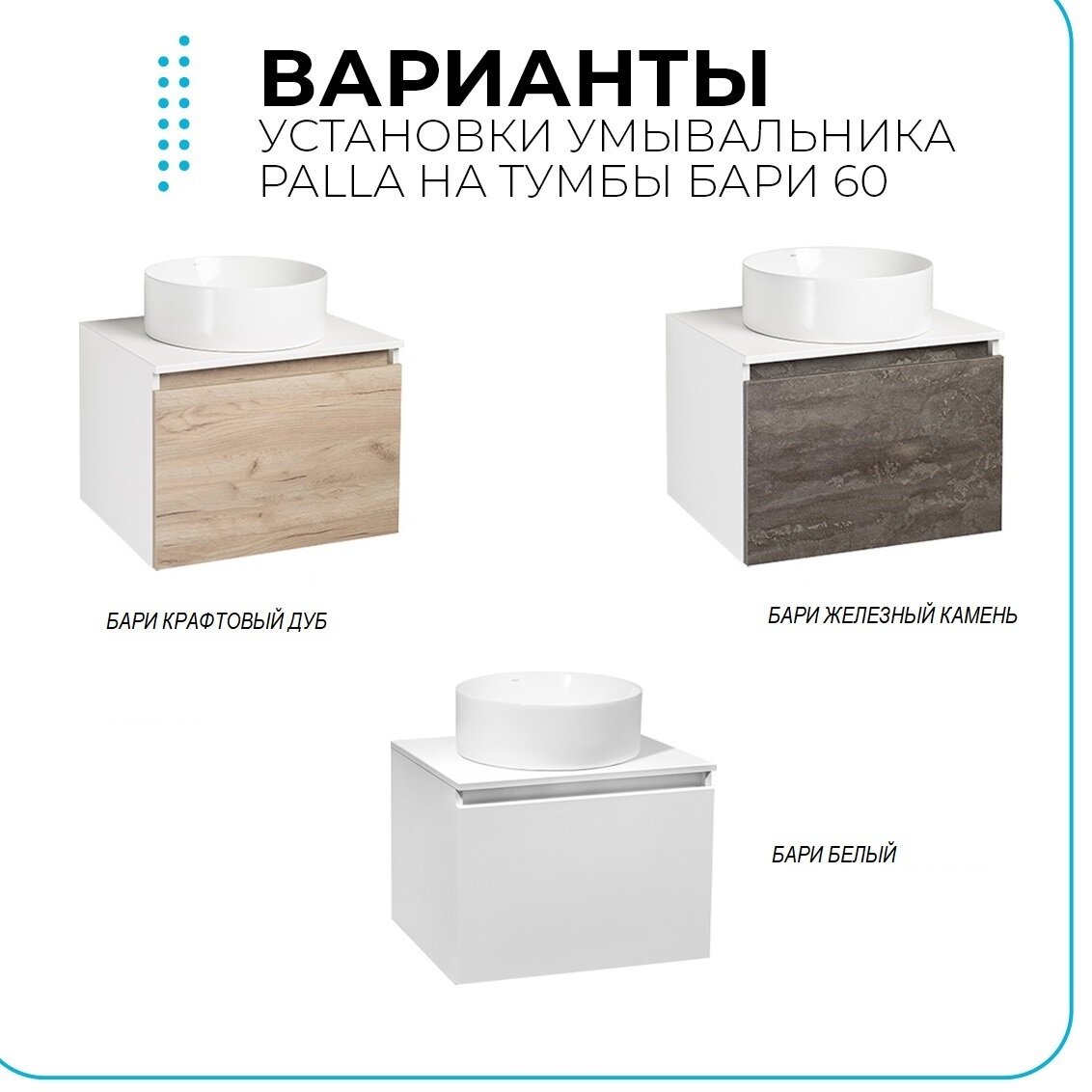 Раковина в ванную накладная PALLA, круглая, с выпуском