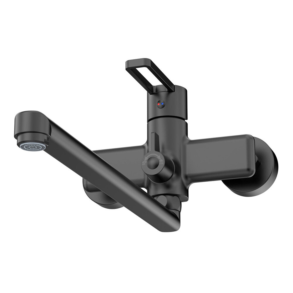 Смеситель для ванной с длинным изливом и лейкой TOKITO TOK-KUD-1015 серия KUDO, латунный, черный матовый
