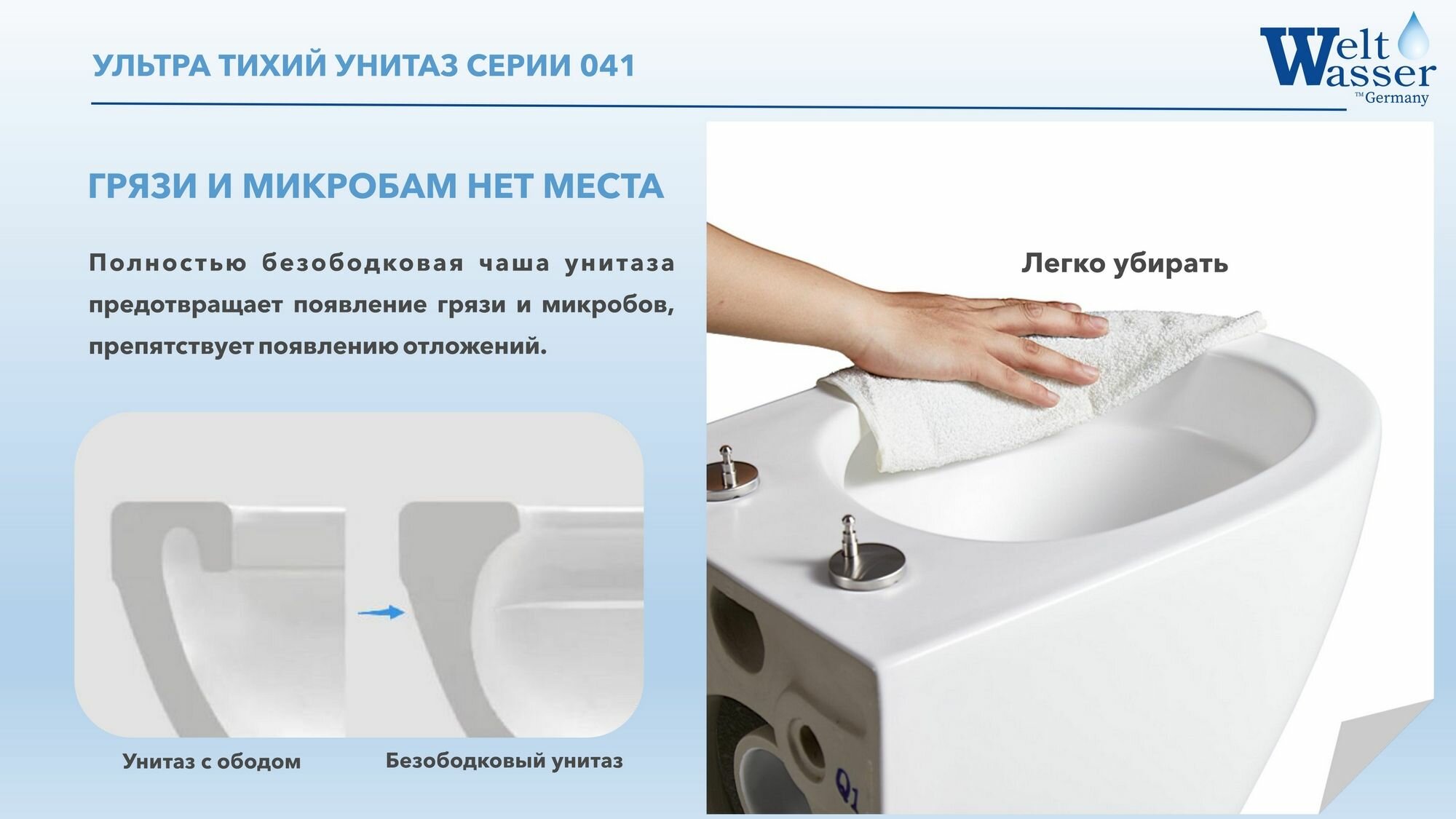 Безободковый напольный унитаз Weltwasser MERZBACH белый глянец , сиденье с микролифтом
