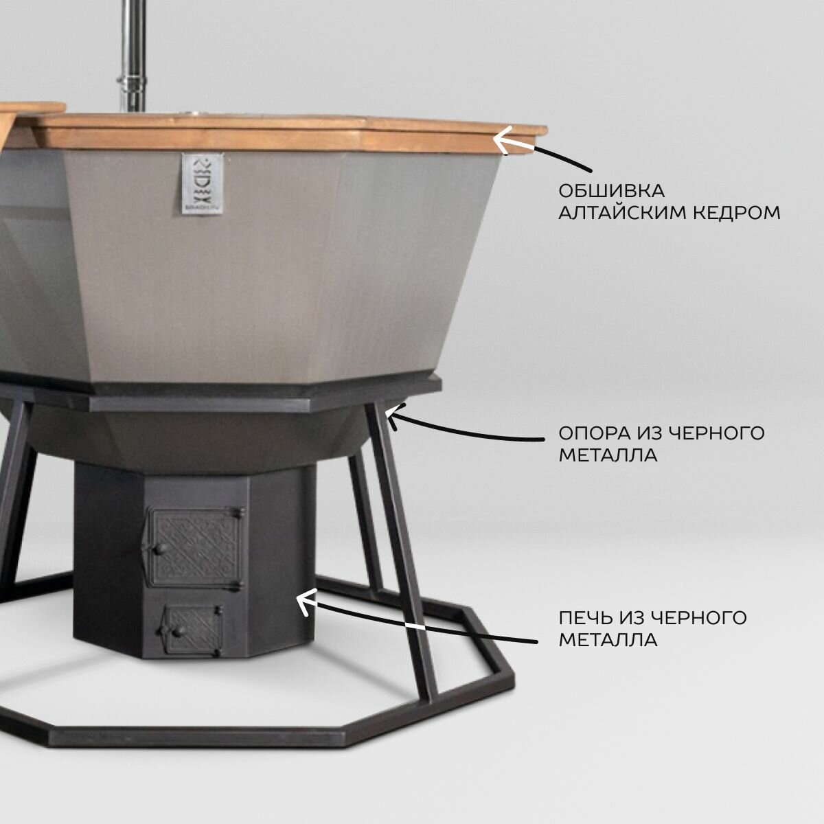 Вальцованный чан восьмигранный 430 сталь 2мм с печью и опорой из ЧМ окрашенный