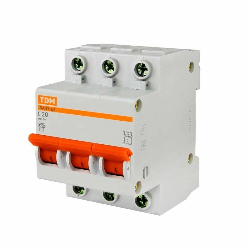 Купить Автомат TDM ВА47-63 3Р, 20 А, 4,5 кА, С