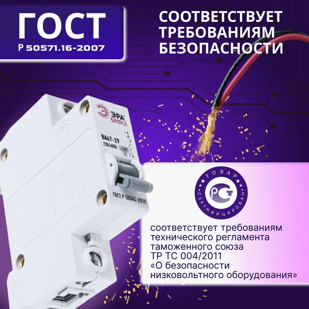 Автомат Б0039220 ЭРА SIMPLE-mod-03 1P 16А (С) выключатель ВА 47-29 6шт