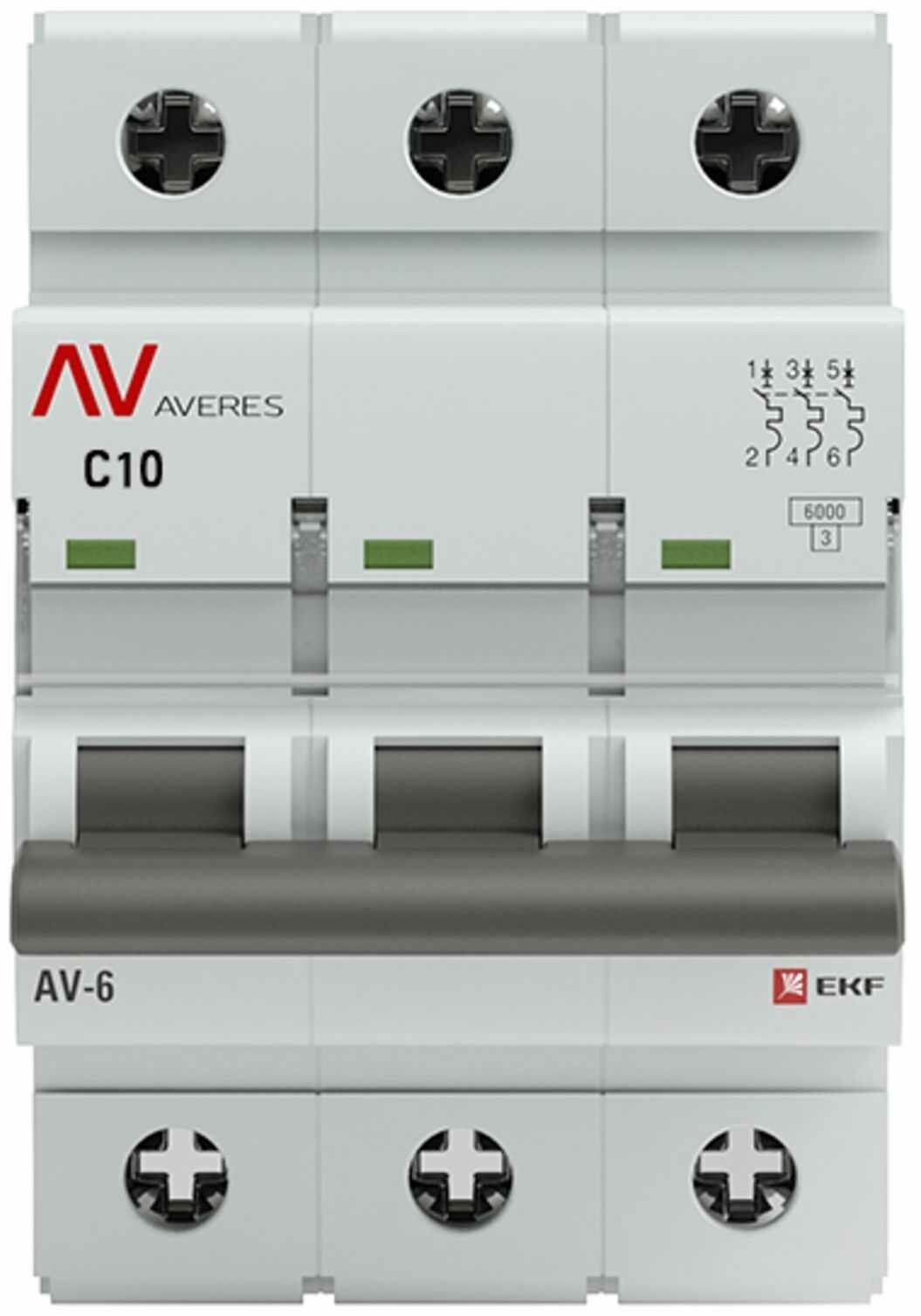 Купить Автоматический выключатель Ekf 3п C 10А 6кА AV-6 AVERES, mcb6-3-10C-av