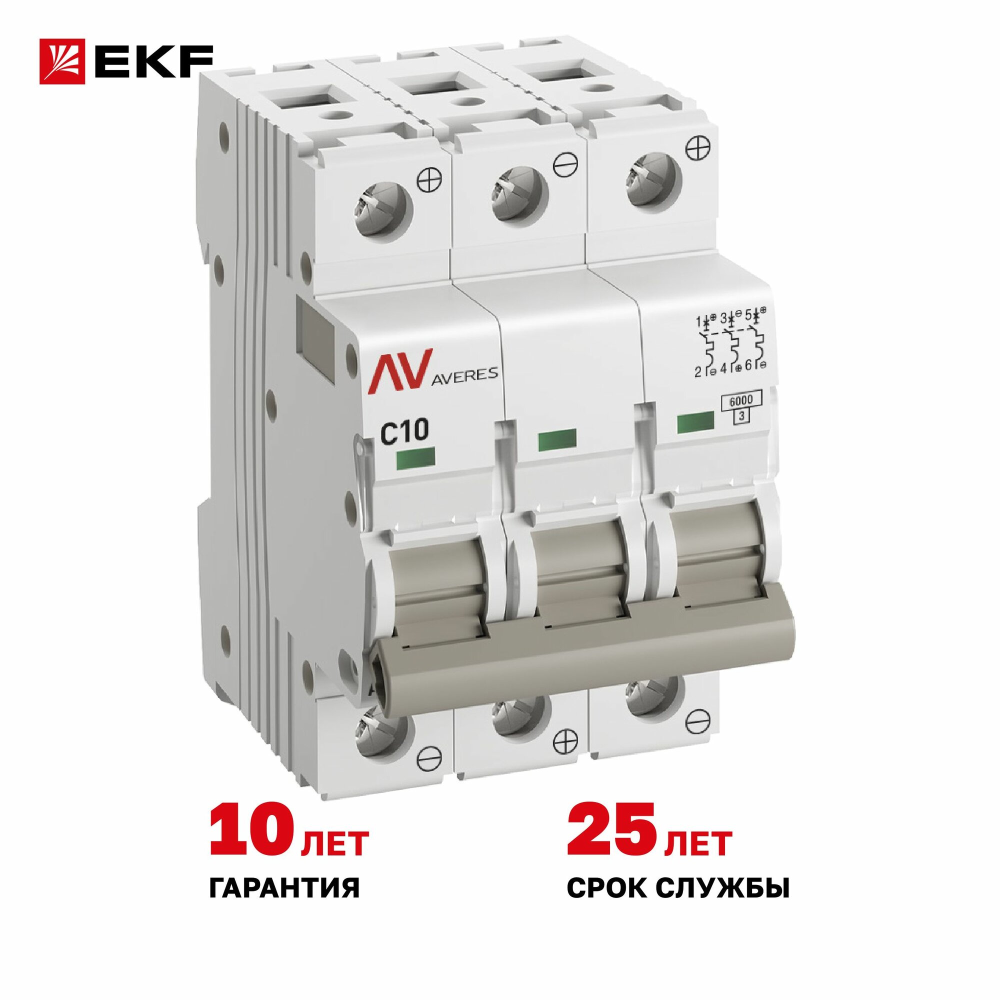Автоматический выключатель Ekf 3п C 10А 6кА AV-6 AVERES, mcb6-3-10C-av