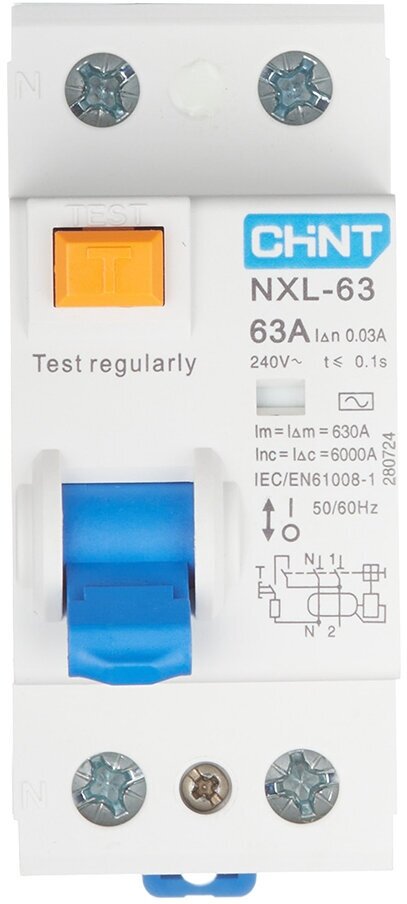 Выключатель дифференциального тока CHINT NXL-63 1п+N 63А 30мА тип AC 6кА , 280724 интересное: