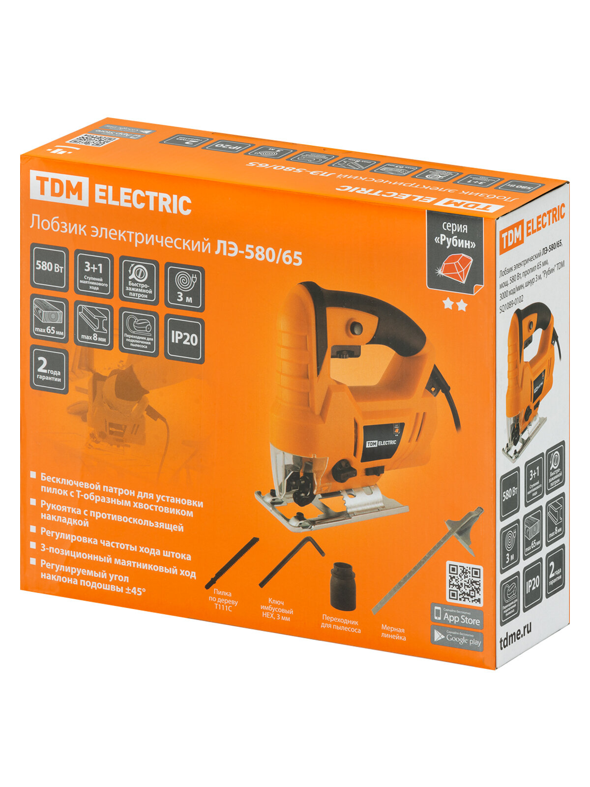 Купить Лобзик электрический Tdm Electric ЛЭ-580/65, мощ. 580 Вт, пропил 65 мм, 3000 ход/мин, шнур 3 м, "Рубин", SQ1089-0102