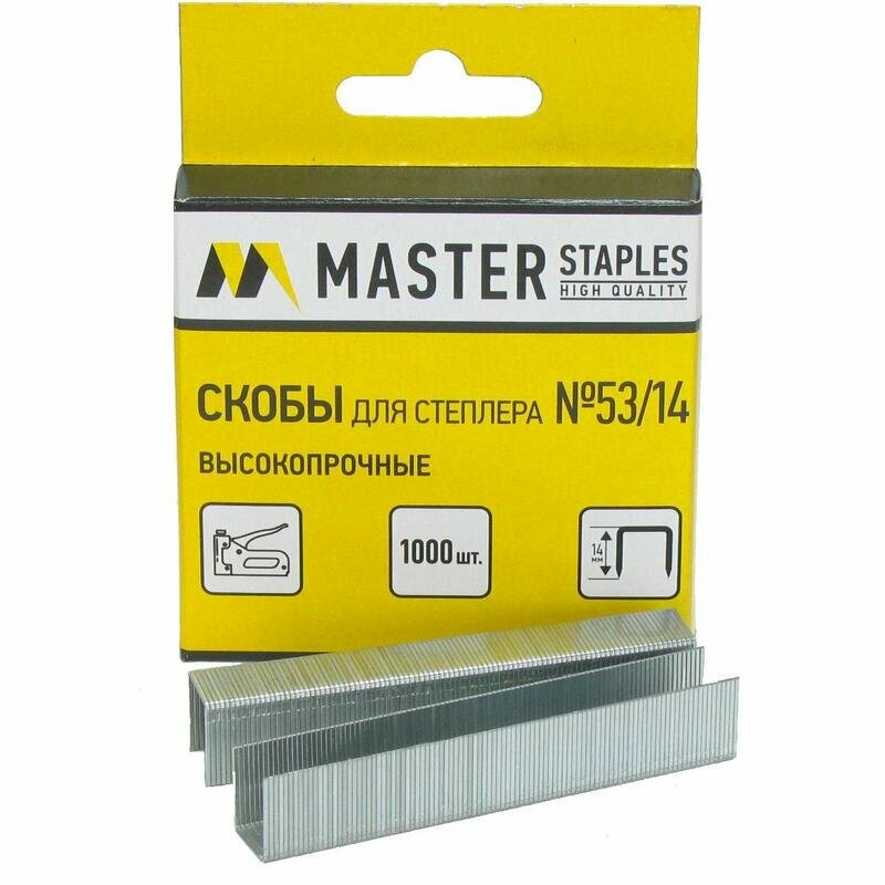 Скобы для степлера строительного/мебельного Master/Глобус, тип 53, 14 мм, 1000 штук в упаковке интересное: