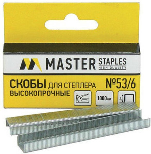Скобы для степлера строительного/мебельного Master/Глобус, тип 53, 14 мм, 1000 штук в упаковке