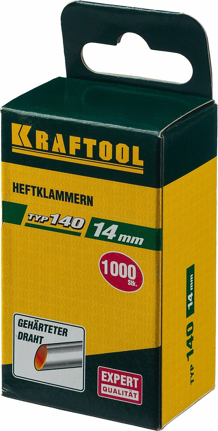 Купить KRAFTOOL 14 мм скобы для степлера плоские тип 140 (G / 11 / 57), 1000 шт, супертвердые, 31680-14