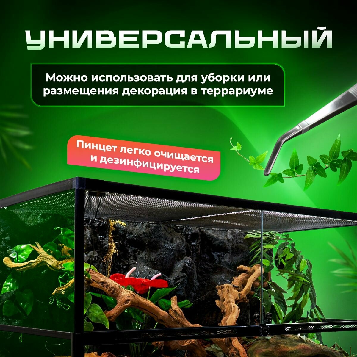 Пинцет медицинский, пинцет для аквариума, террариума и для кормления рептилий, 25 см, PetPetZone, сталь интересное: