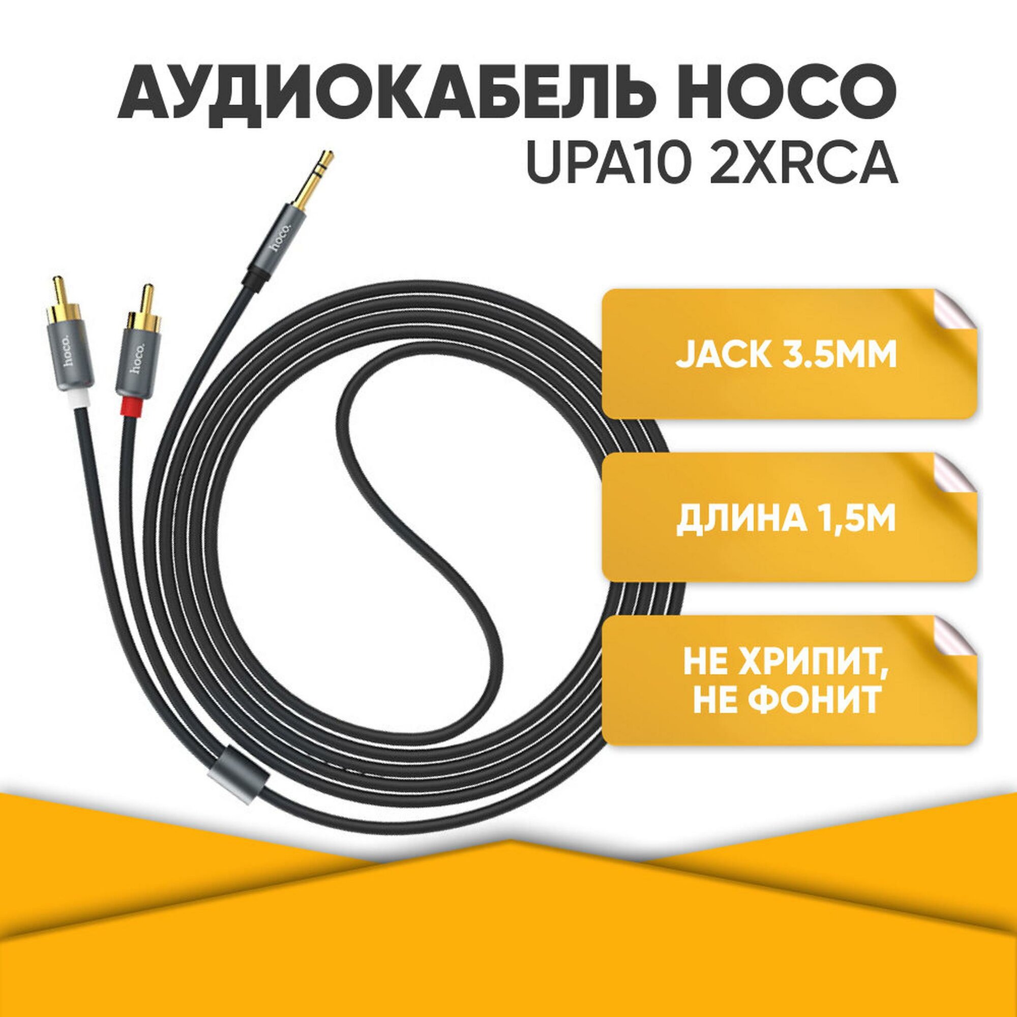 Кабель Hoco UPA10 Jack 3,5mm(m) - 2xRCA(m), 1.5 м, 1 шт., черный интересное: