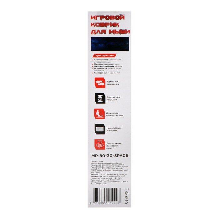 Купить Коврик для мыши Gembird с рисунком "космос" прошитые края 800х300х3мм ткань+резина MP-80-30-SPACE