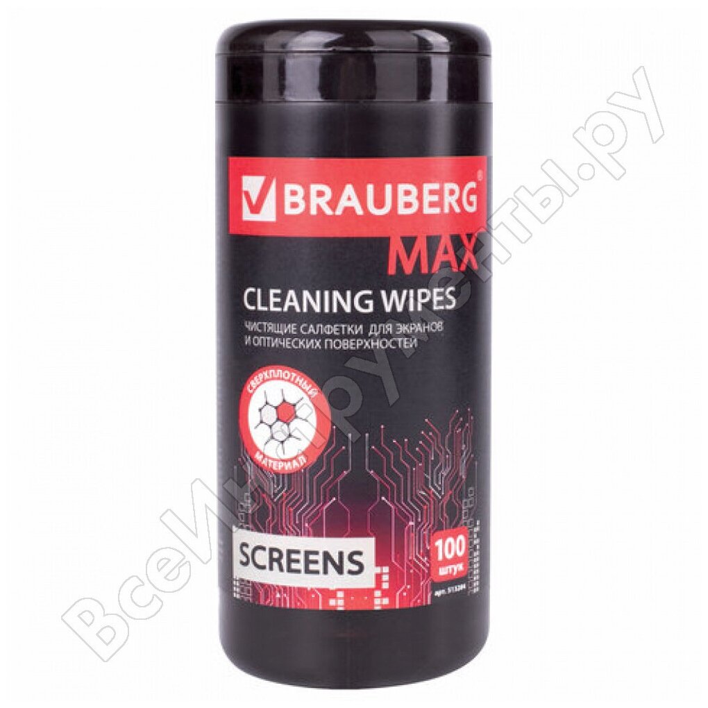 BRAUBERG Салфетки для экранов всех типов и оптики brauberg max плотные, 13х17 см, туба 100 шт., влажные, 513284