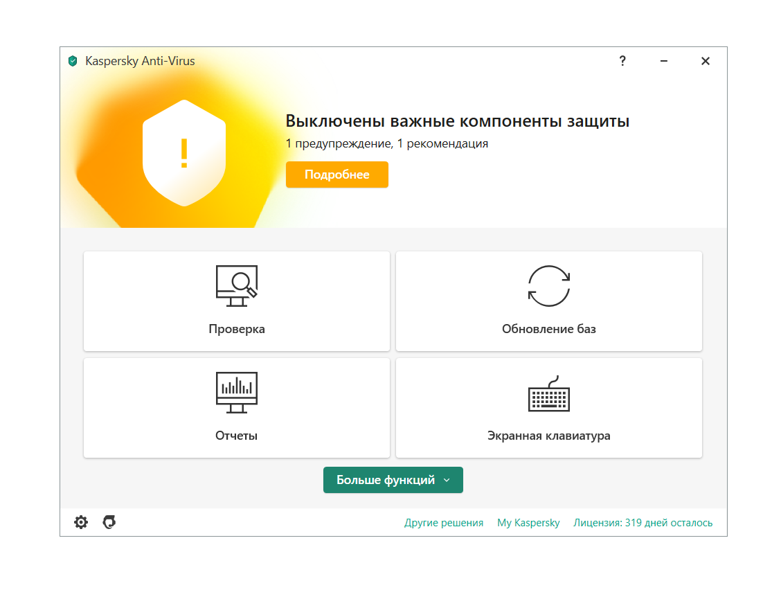 | Состав пакета | Антивирус Kaspersky Anti-Virus |