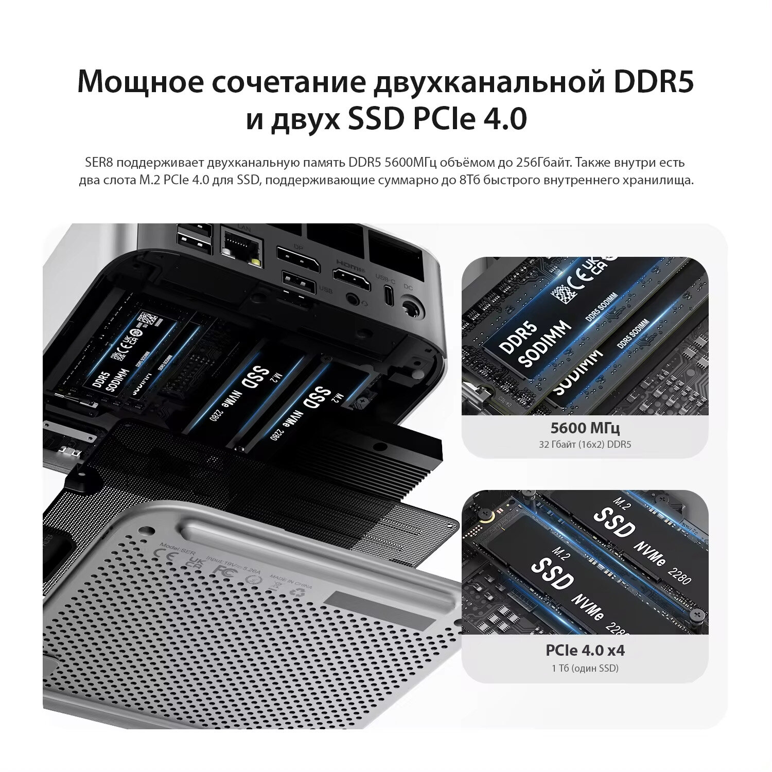 СохранитьМини-ПК Beelink SER8, AMD Ryzen 7 8845HS, 32ГБ/1ТБ, серебристый интересное: