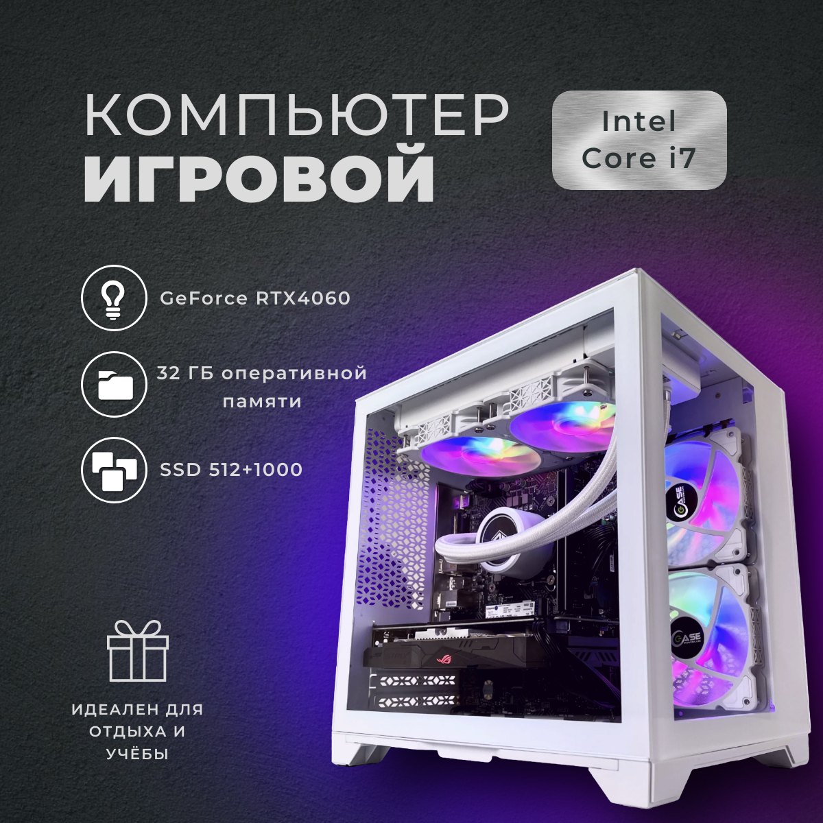 Игровой компьютер (системный блок) Intel Core i7 6ядер/RTX4060/ 32GB /SSD 512+1000Gb / 700W / WIN 10 PRO