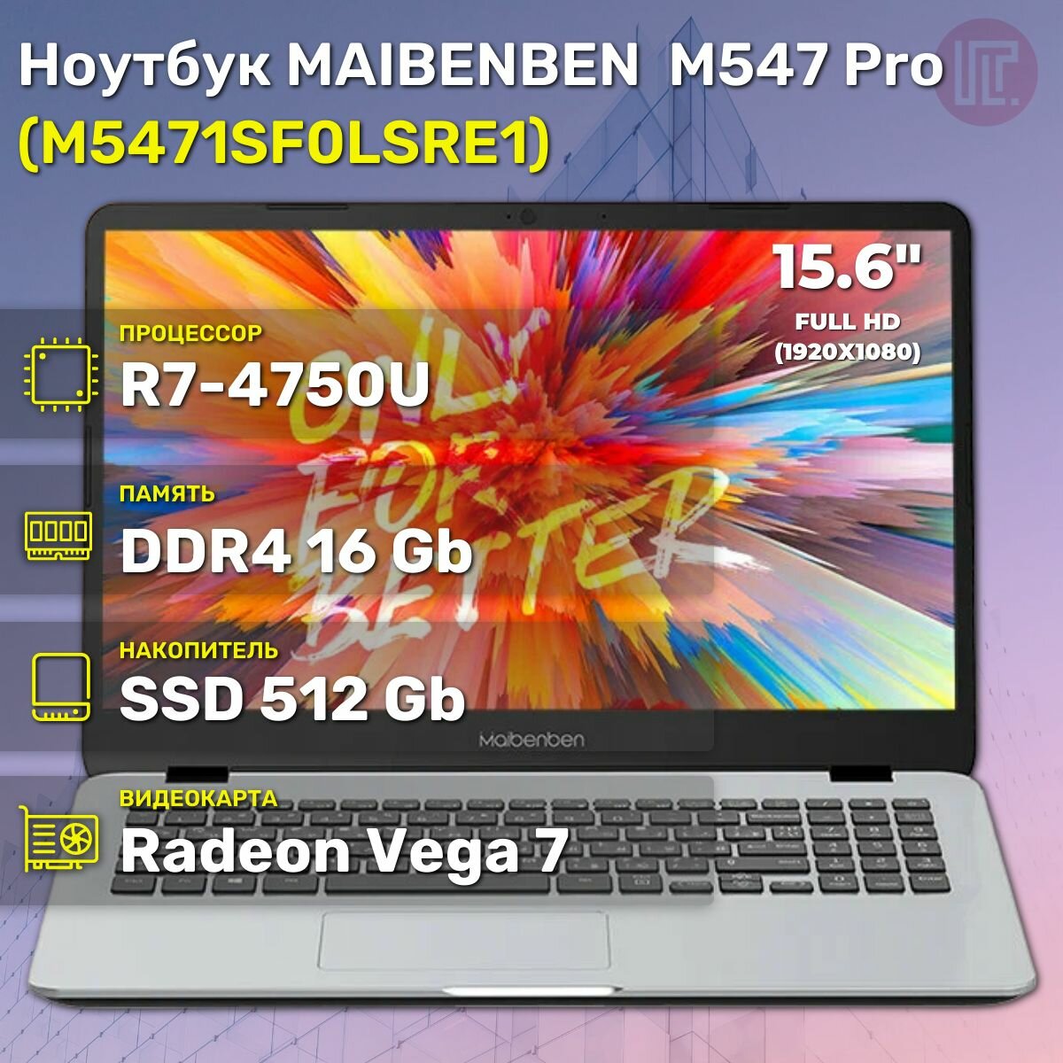 Ноутбук MAIBENBEN M547 M5471SF0LSRE1 (15.6", Ryzen 7 Pro 4750U, 16 ГБ/ SSD 512 ГБ, Radeon Graphics) Серебристый