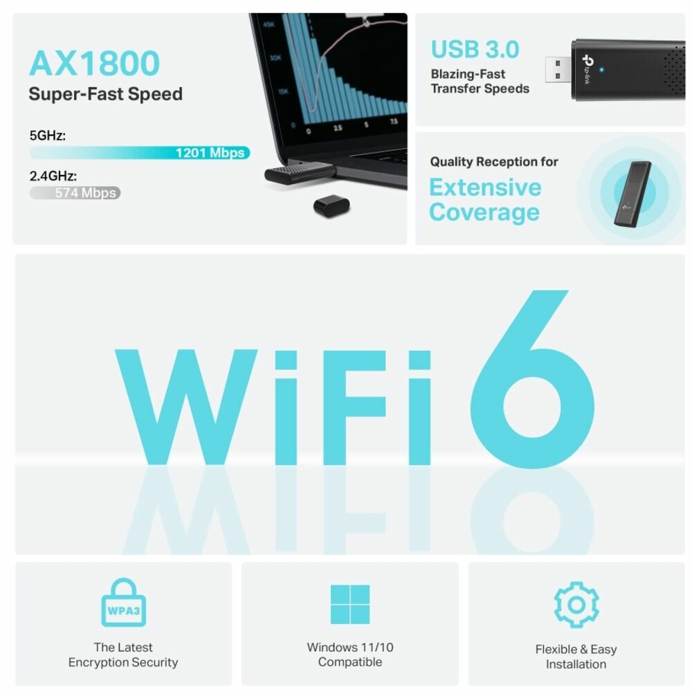 Двухдиапазонный Wi-Fi 6 USB-адаптер AX1800 (ARCHER TX20U) интересное: