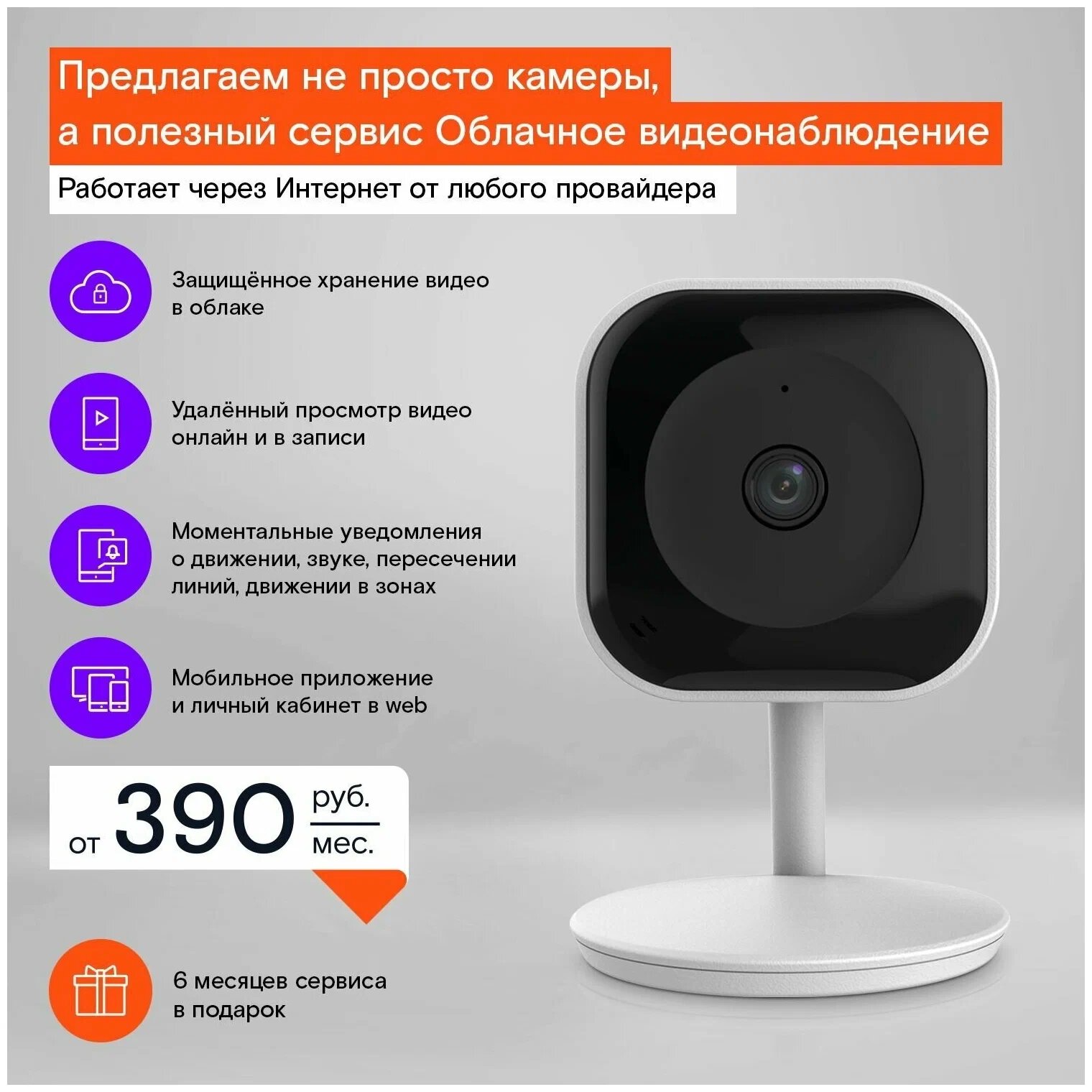 Внутренняя Full HD камера Ростелеком 14 дней сервиса в подарок