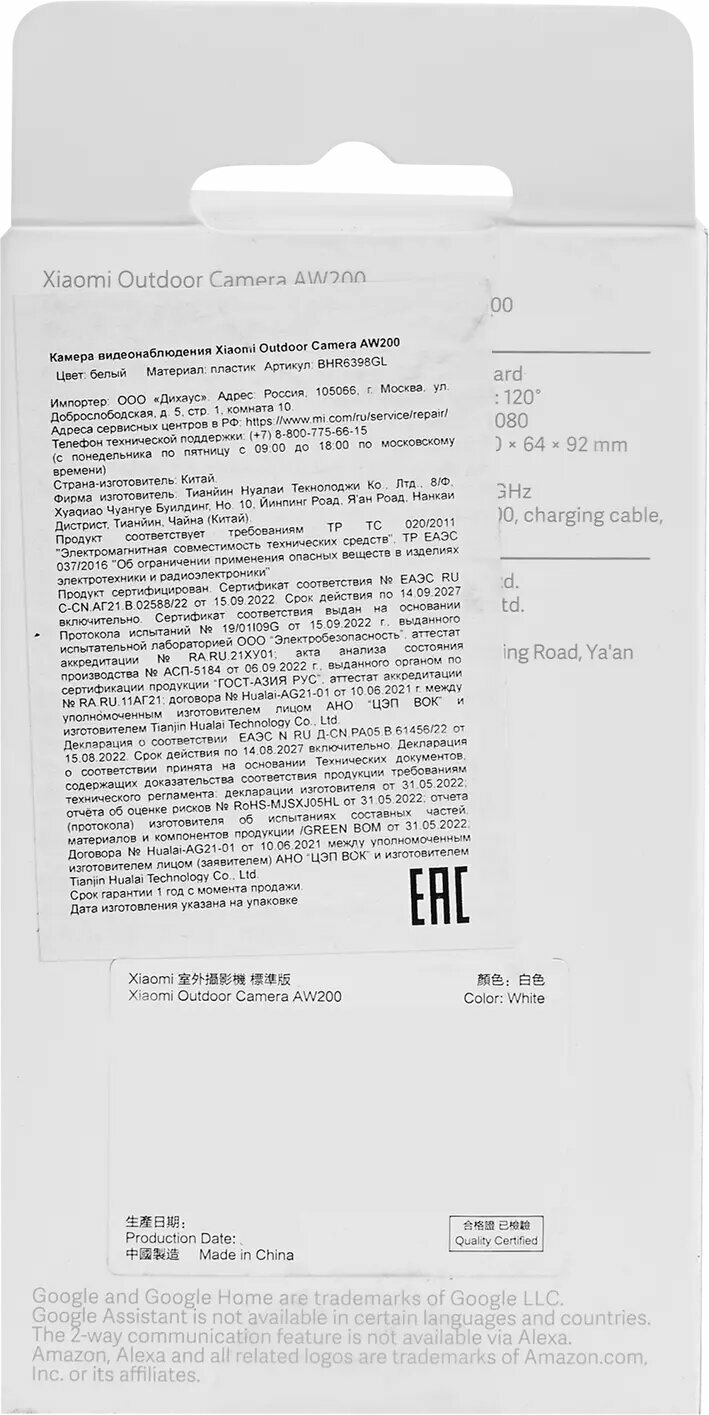 IP-камера Xiaomi Outdoor Camera AW200 EU