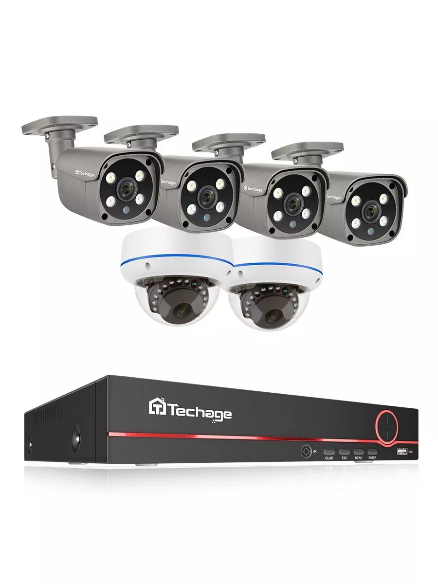 Купить Комплект видеонаблюдения Techage NVR, 8 каналов, 6 IP-камер