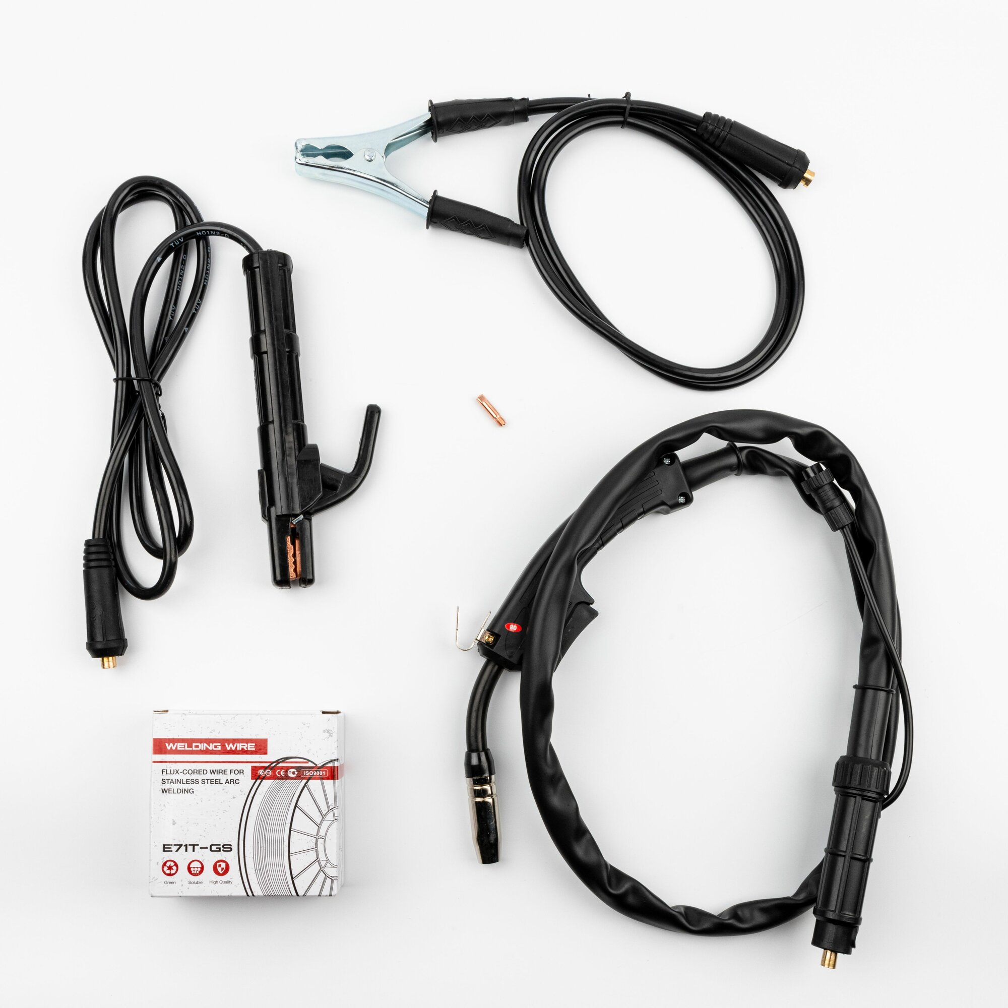 | Комплектация | сварочный аппарат, электродержатель 200А 150см, сварочная горелка без газа 125см, кабель массы 125см, порошковая проволока EDON E71T- GS 0.5кг, 2 наконечника 0.8 мм и 1мм |