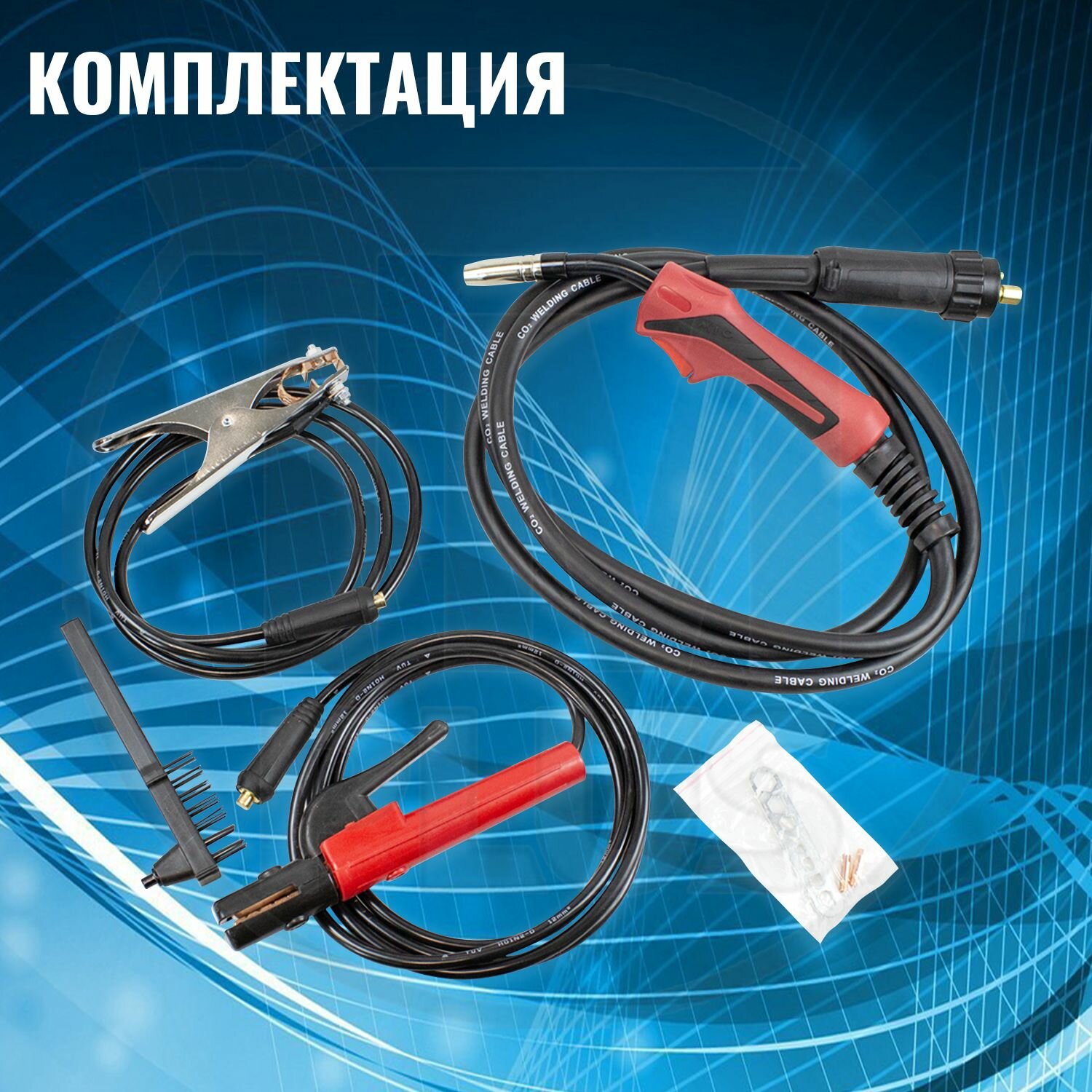 | Комплектация | Сварочный аппарат; Электрододержатель с силовым кабелем в сборе; Силовой кабель с зажимом; Рукав с горелкой для сварки MIG-MAG; Перчатки-краги; Проволока сварочная (стальная)-1кг -1шт.; Проволока сварочная (порошковая)-0,5кг - 1шт.; Ролик протяжки проволоки; Ключ накидной; Наконечник 2шт. Щётка-молоток; Руководство по эксплуатации. |