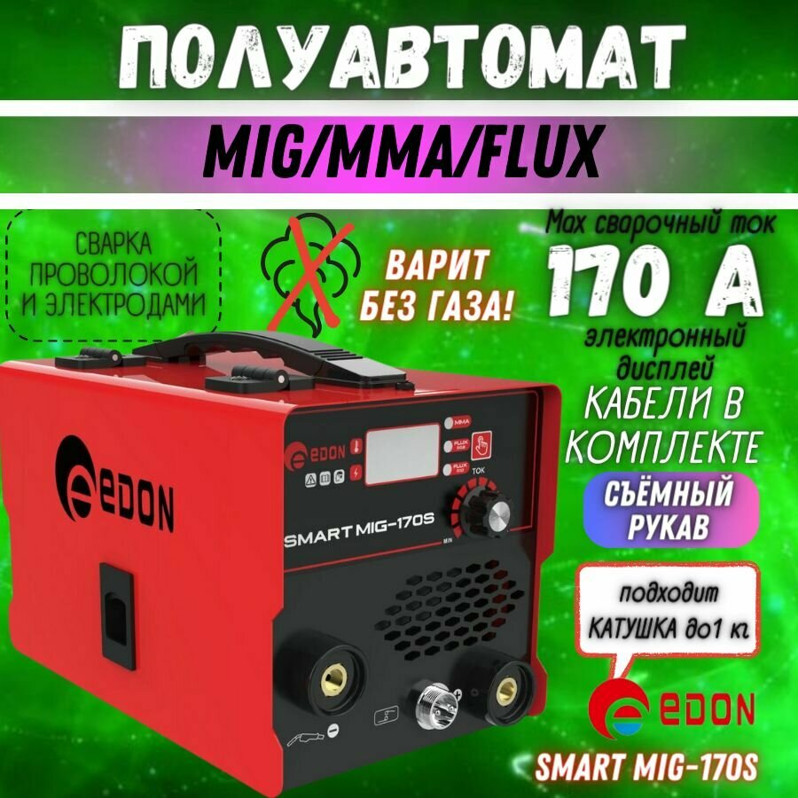 СохранитьСварочный полуавтомат инверторный Edon Smart MIG-170S, многофункциональный аппарат инвертор (без газа) MMA MIG FCAW + кабели + горелка + форсаж дуги, горячий старт, антизалипание интересное: