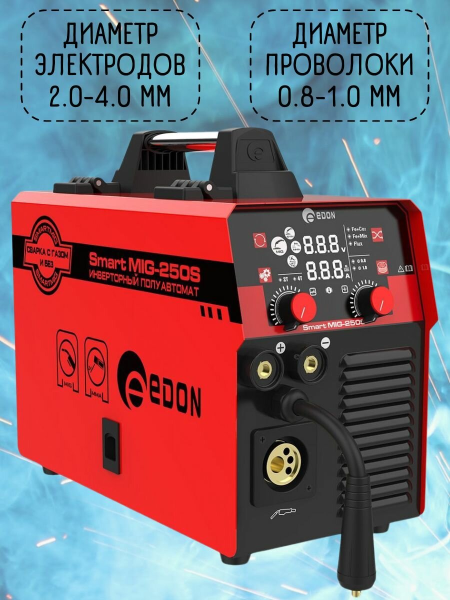 Полуавтомат сварочный Edon Smart MIG-250S /инвертор 4 в 1 / (варит с газом и без газа)